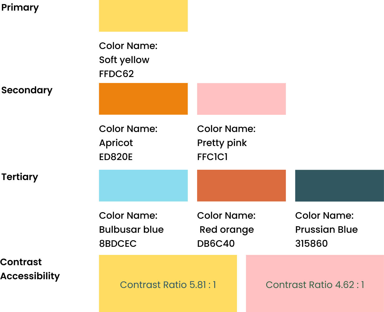 I carefully selected a color palette inspired by my mood board that also meets contrast accessibility standards, ensuring greater inclusivity in the design. Additional accent colors were incorporated to introduce visual energy and balance.